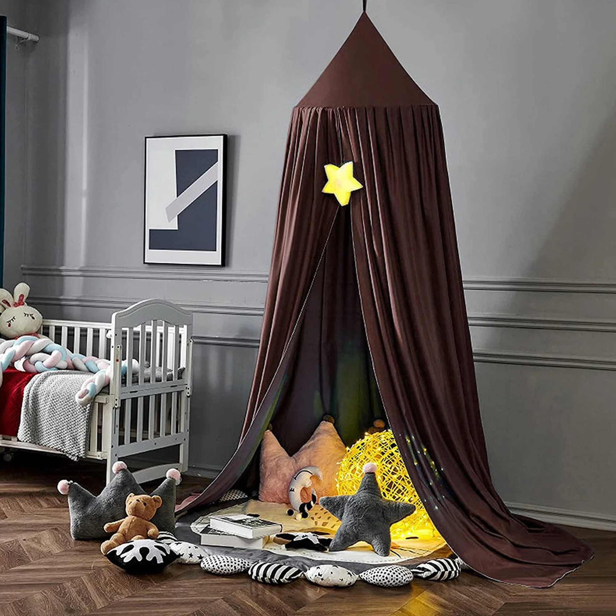 Transformeer het babybed tot een knusse oase met de vintagelook klamboe. Creëer geborgenheid en sfeer in de babykamer.